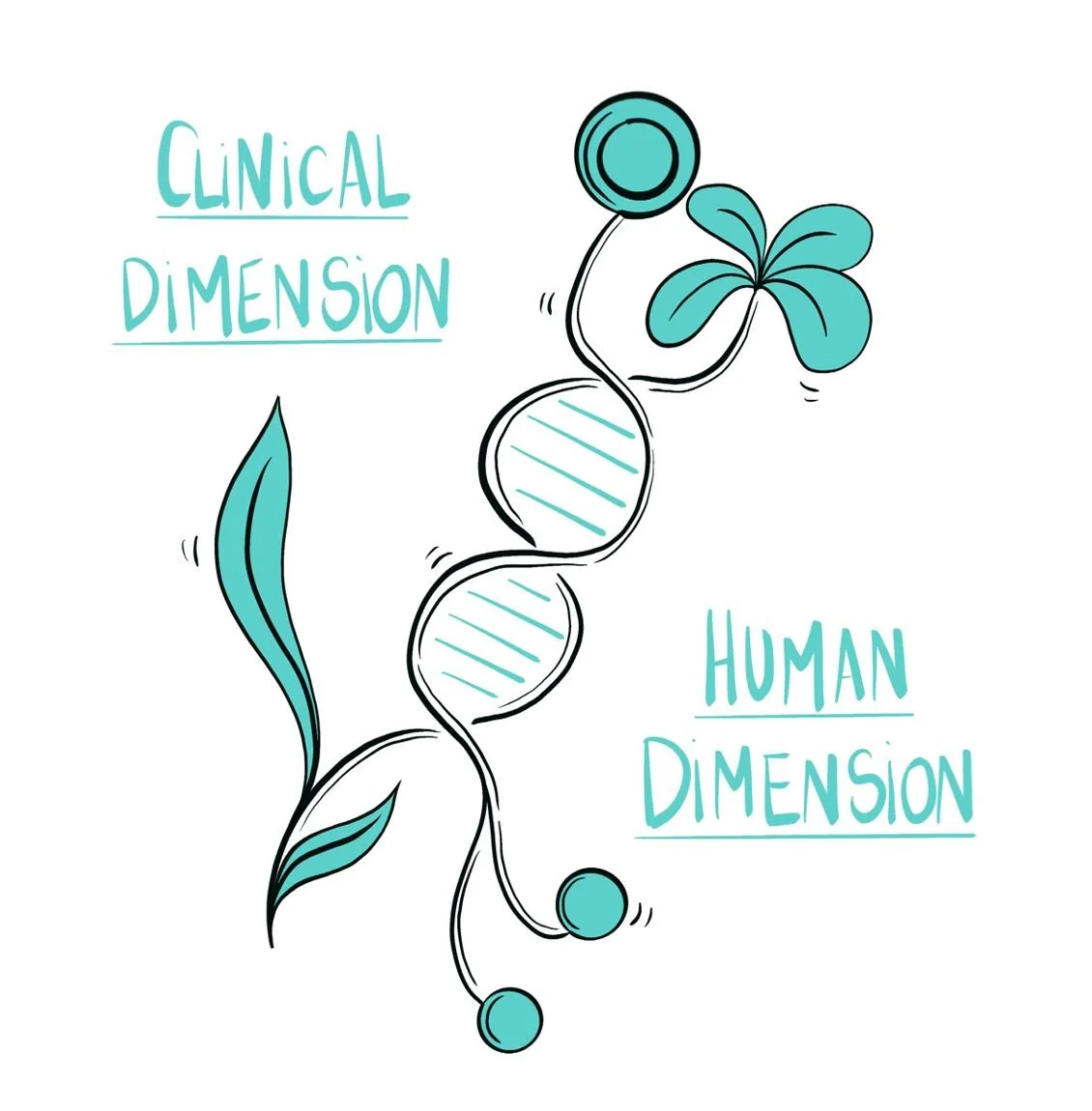 This particular digital conversation took place in a Whatsapp group for the RCGP’s Creative Health Special Interest Group with links to the National Centre for Creative Health and Professor Louise Younie’s Flourishing Spaces work. In an infographic Louise and artist Camille Aubry created, two strands become one medicine: a stethoscope for the clinical work, a plant for the human and alive. Wrapped around each other like a double helix, they form the DNA of care. Ian McGilchrist, in The Master and His Emissary, reminds us how vital this integration is, how much we need an infusion of right-hemispheric wisdom in our increasingly left-hemispheric world.